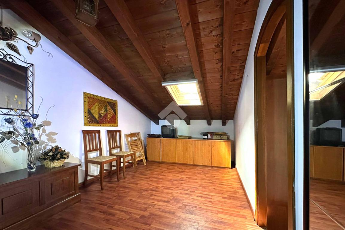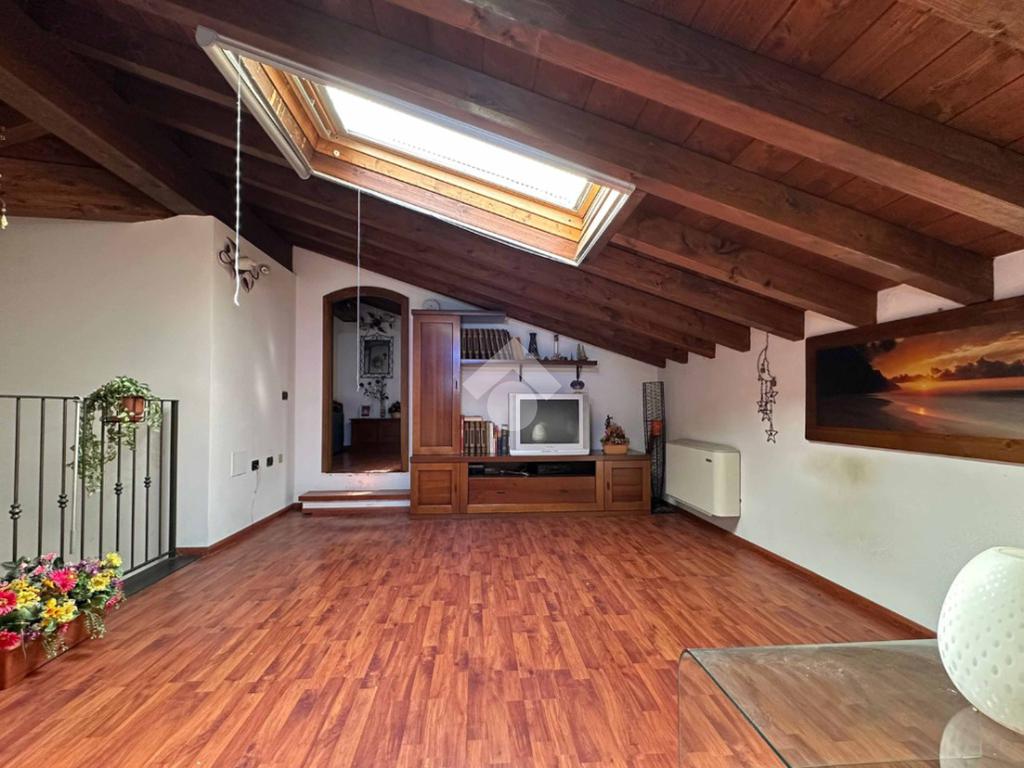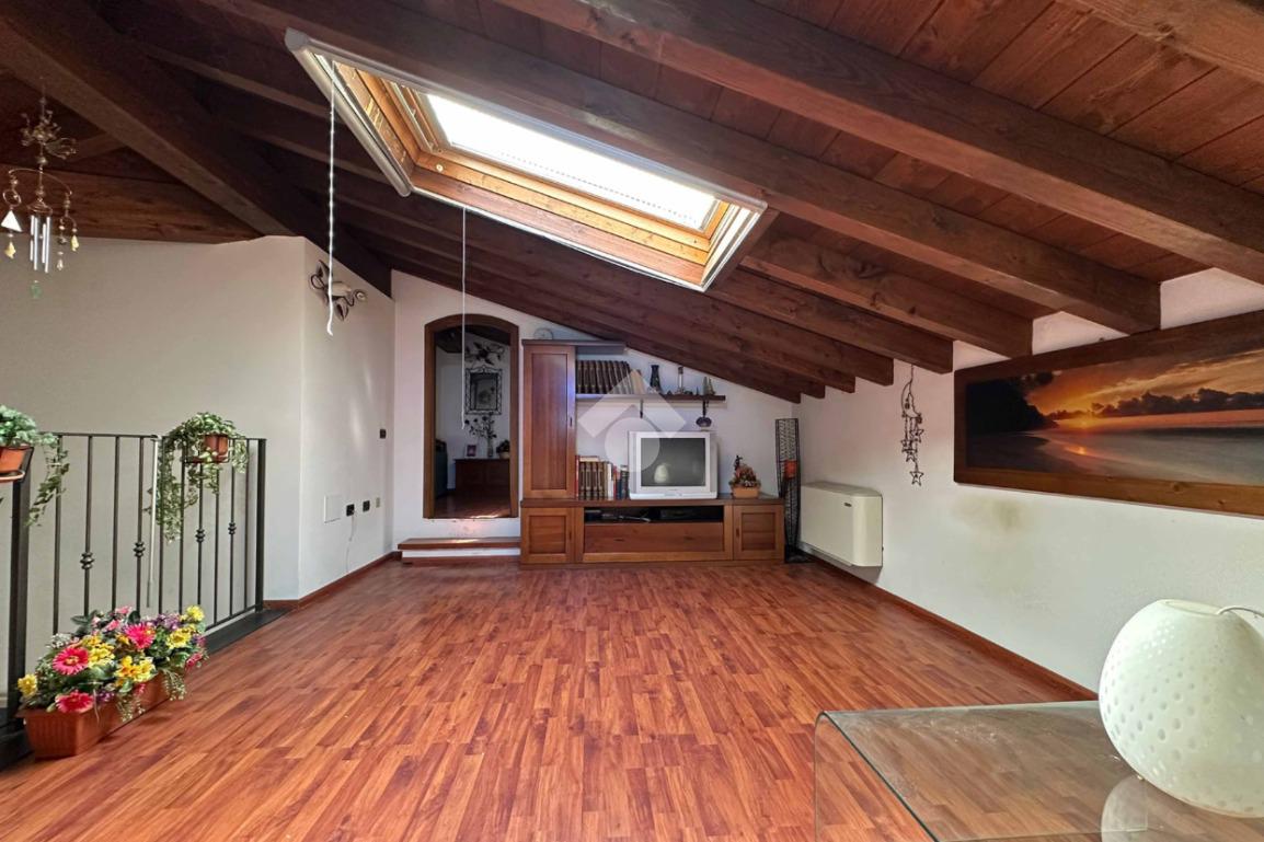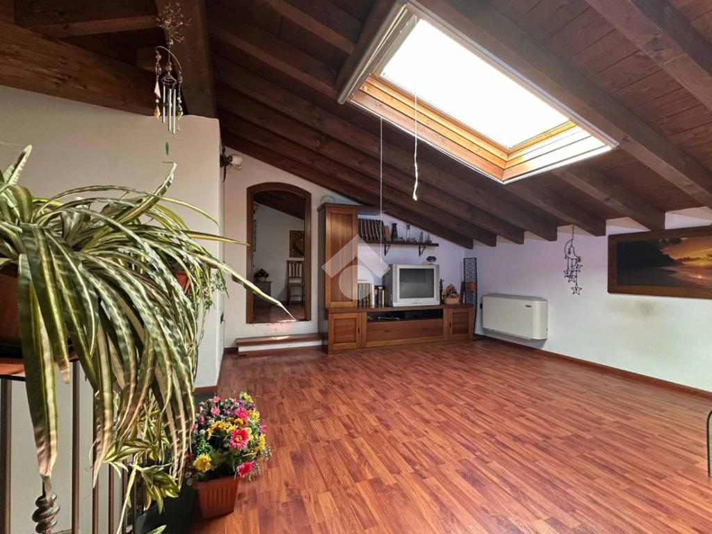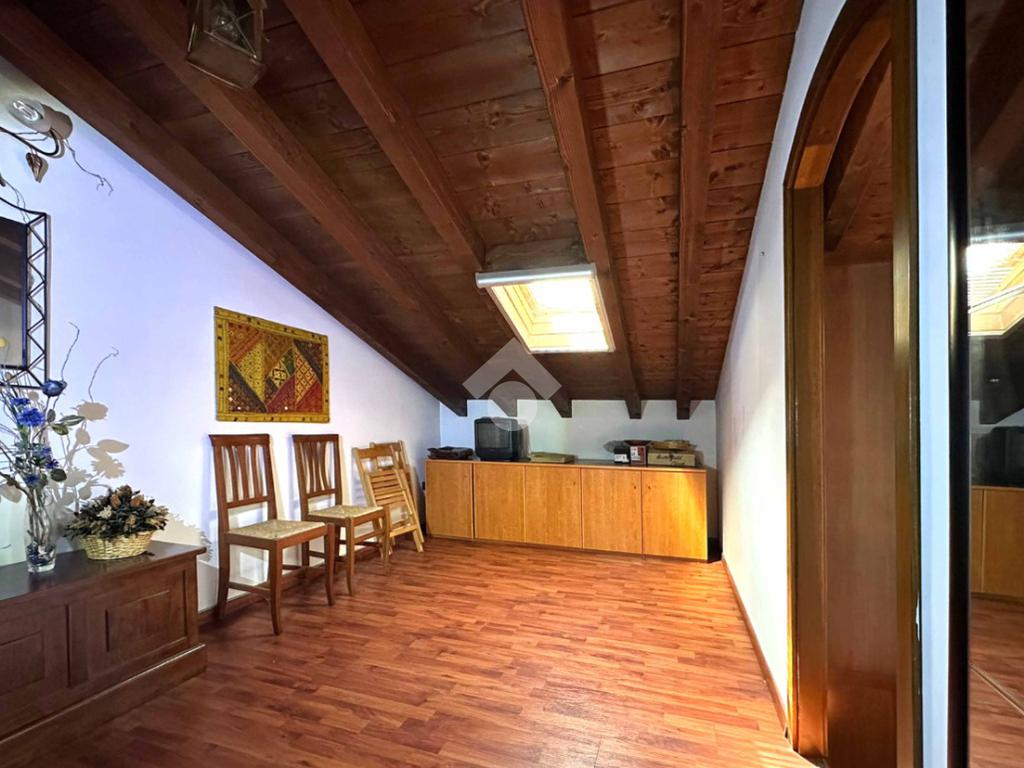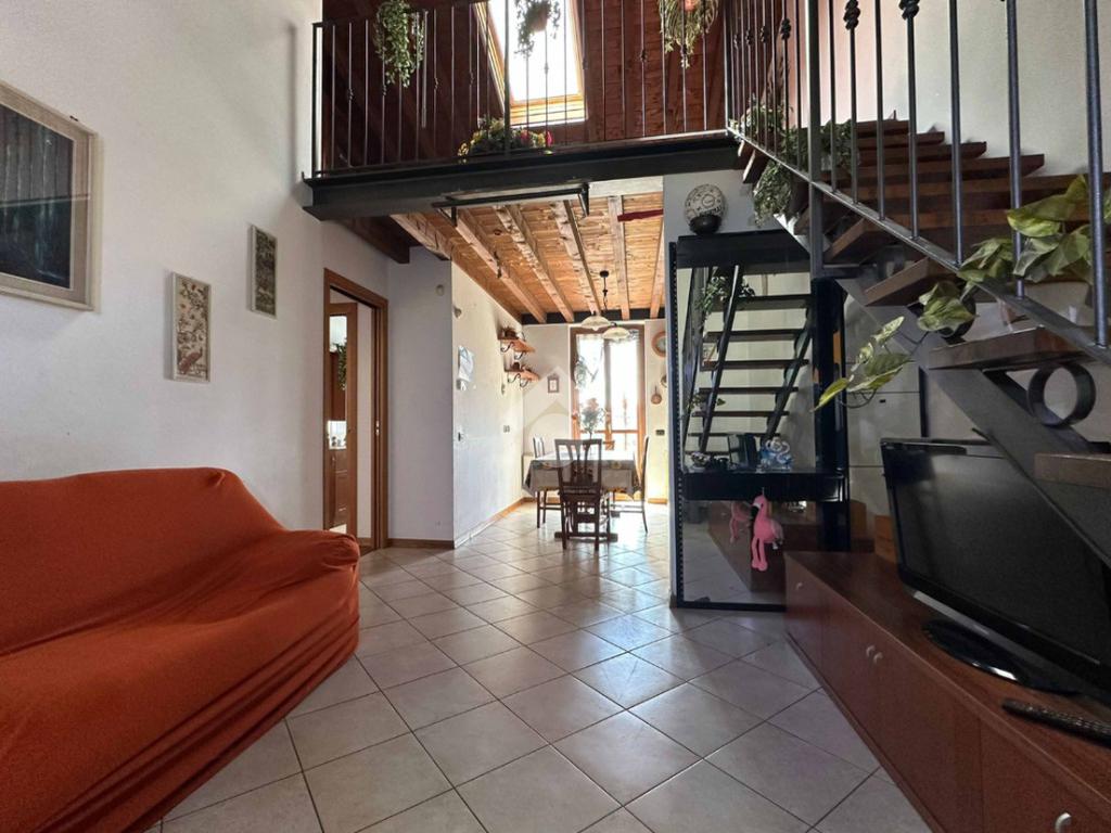 Chieve - In bel contesto residenziale. L'immobile è composto da soggiorno e cucina a vista, due balconi. Disimpegno, due camere da letto con parquet e bagno con la vasca. Appartamento di ampia metratura con soppalco con vista su zona giorno e mansardina di 30 mq rifiniti in parquet e travi a vista ideale come terza camera o zona relax/hobbies. La soluzione è completa di box doppio al piano interrato. Libero subito