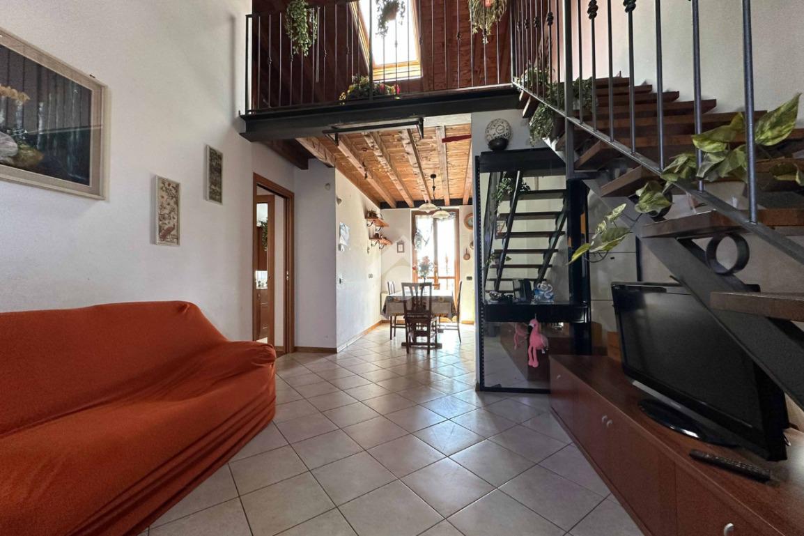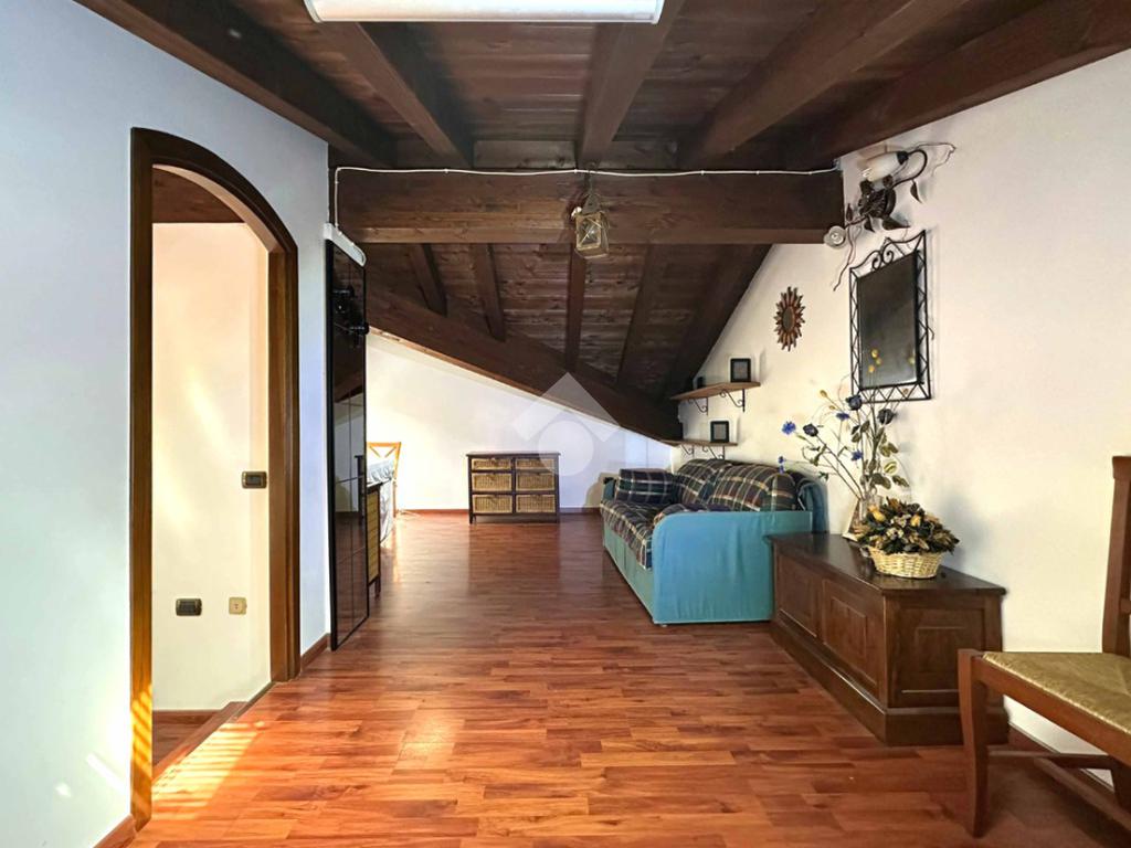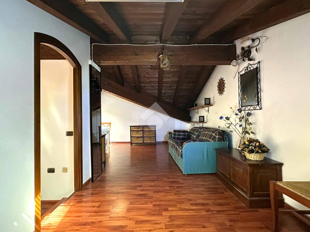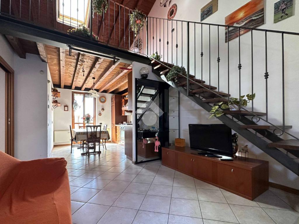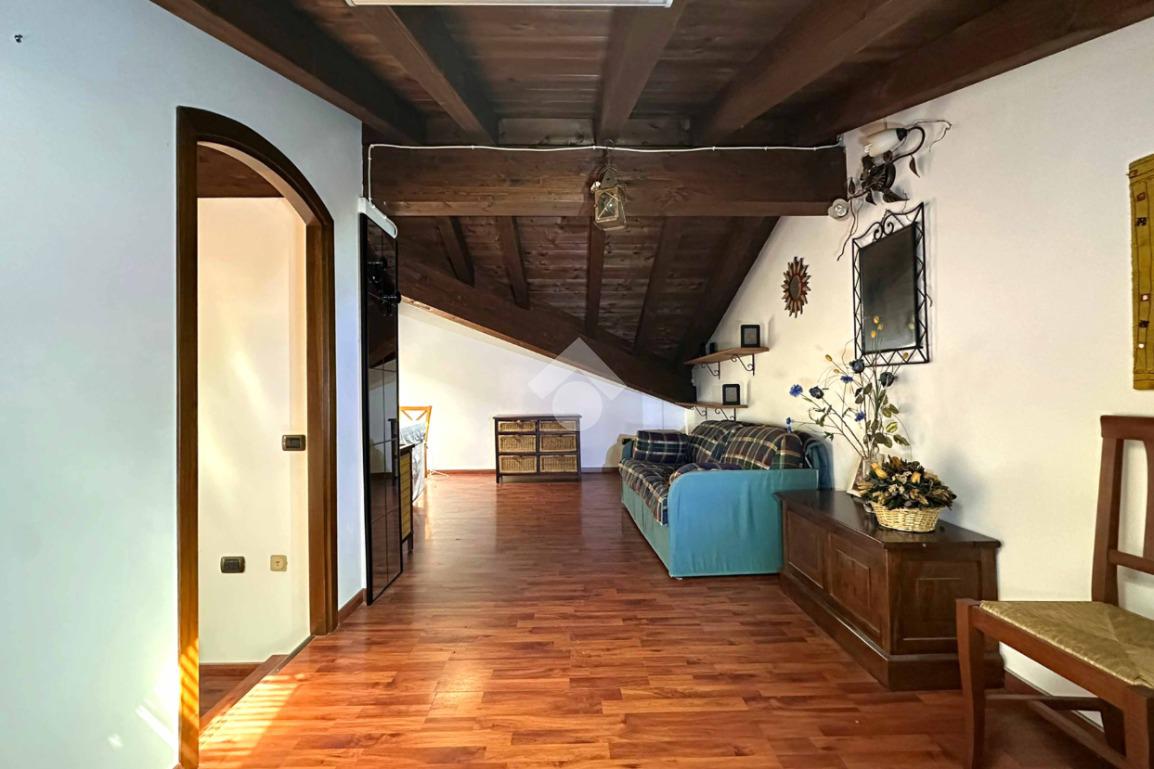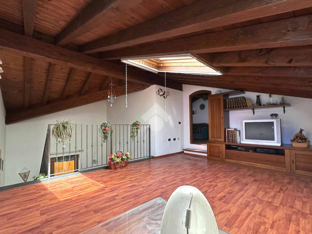 Chieve - In bel contesto residenziale. L'immobile è composto da soggiorno e cucina a vista, due balconi. Disimpegno, due camere da letto con parquet e bagno con la vasca. Appartamento di ampia metratura con soppalco con vista su zona giorno e mansardina di 30 mq rifiniti in parquet e travi a vista ideale come terza camera o zona relax/hobbies. La soluzione è completa di box doppio al piano interrato. Libero subito