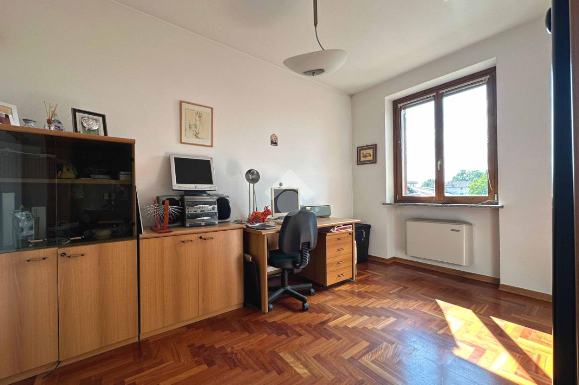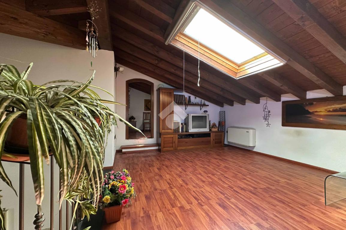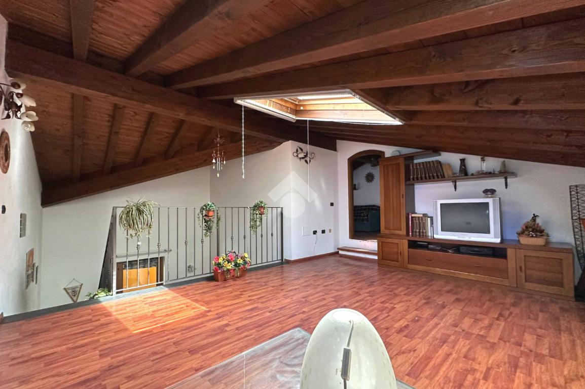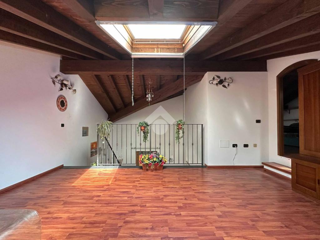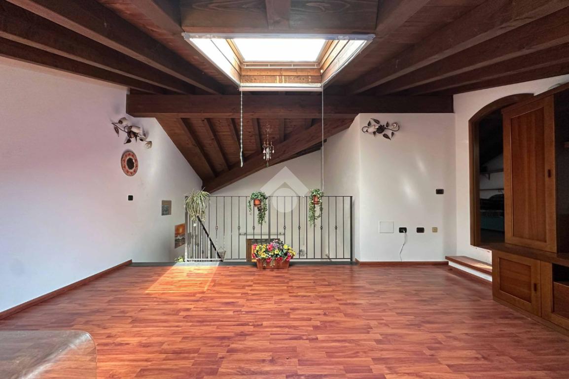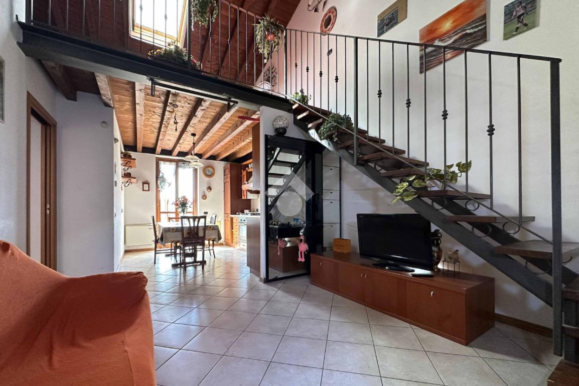Chieve - In bel contesto residenziale. L'immobile è composto da soggiorno e cucina a vista, due balconi. Disimpegno, due camere da letto con parquet e bagno con la vasca. Appartamento di ampia metratura con soppalco con vista su zona giorno e mansardina di 30 mq rifiniti in parquet e travi a vista ideale come terza camera o zona relax/hobbies. La soluzione è completa di box doppio al piano interrato. Libero subito