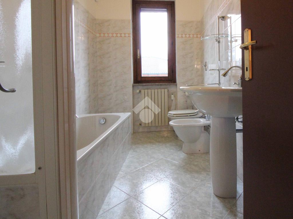 In tranquilla zona residenziale, proponiamo bella villa a schiera ben tenuta. L'immobile è composto dal giardino sul fronte strada ed una scalinata d'ingresso che porta al piano rialzato, balconata con accesso diretto al soggiorno. Bagno di servizio con doccia e comoda cucina abitabile con sfogo sul giardino retrostante tutto piastrellato. Al piano superiore troviamo le tre camere da letto di cui una con balcone e bagno padronale con la vasca. Al piano terra, il box doppio di 30 mq con la basculante elettrica con posto macchina davanti. Cantina di 64 mq con angolo lavanderia. La soluzione è completa di: caldaia a condesazione, pannelli fotovoltaici da 3,89 Kw, aria condizionata, serramenti esterni nuovi, impianto internet fibra, impianto di illuminazione esterno automatico.