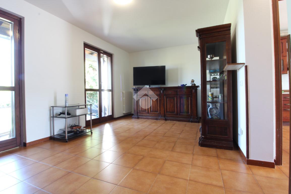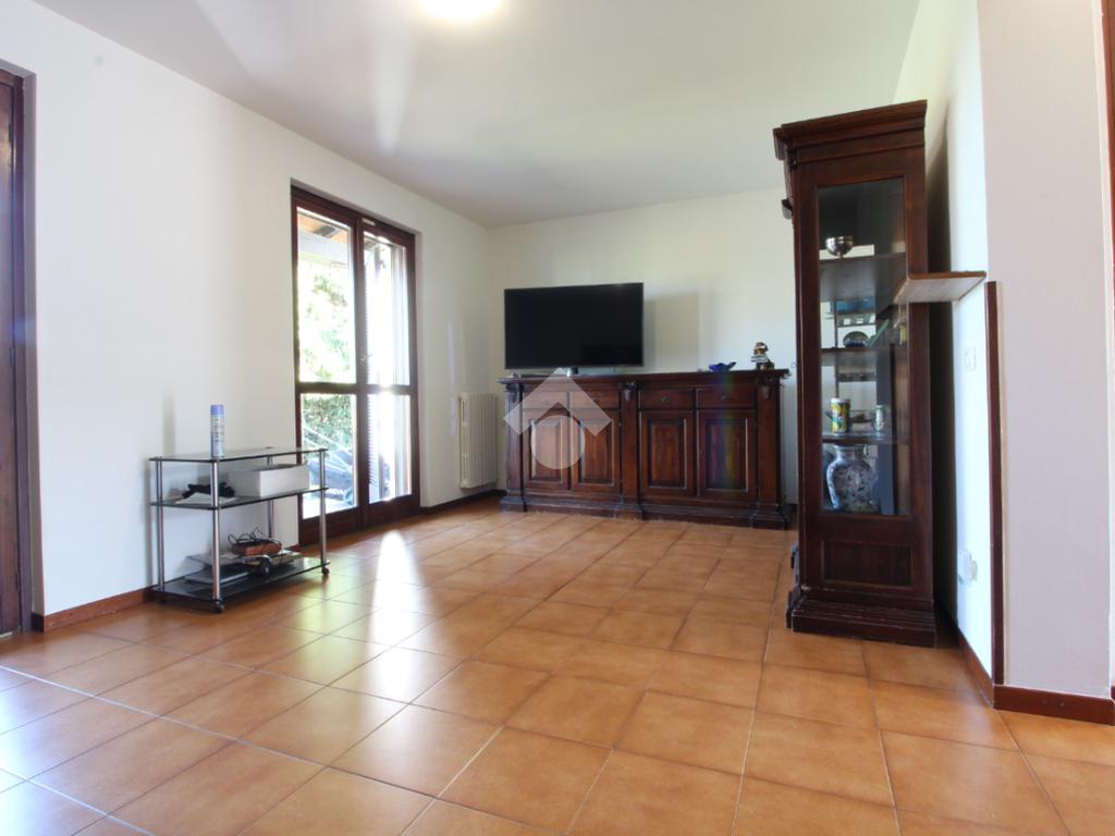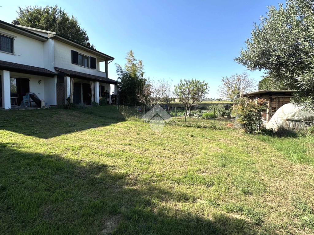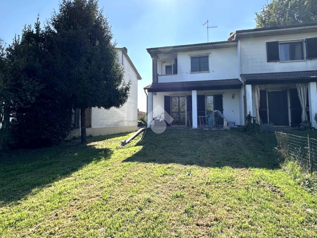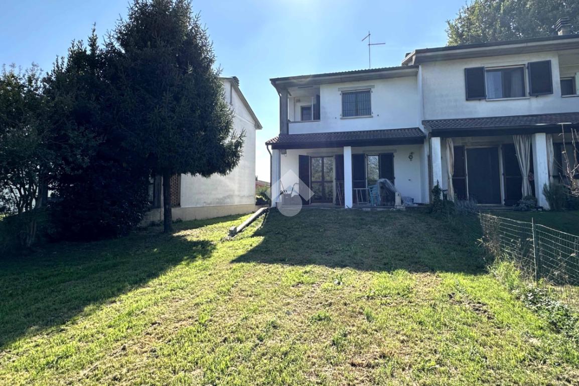 In bella zona residenziale di ville e con vista nel verde, proponiamo abitazione libera su tre lati con portici e giardino privato di circa 330 mq. L'abitazione di comode metrature si sviluppa al piano terra da ingresso, cucina abitabile, soggiorno con accesso diretto al giardino retrostante e bagno di servizio. Al primo piano nella zona notte, tutta rifinita con parquet, troviamo le tre camere da letto di cui una con loggia, ripostiglio ed il bagno padronale con la vasca. Al piano interrato, completano l'abitazione il box e la cantina di 23 mq.