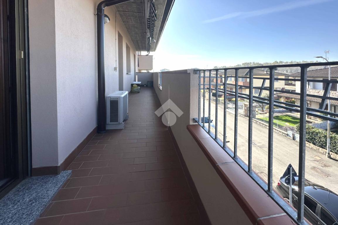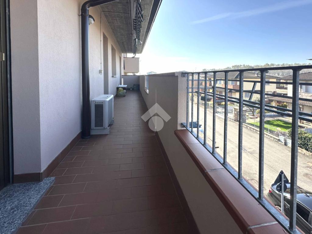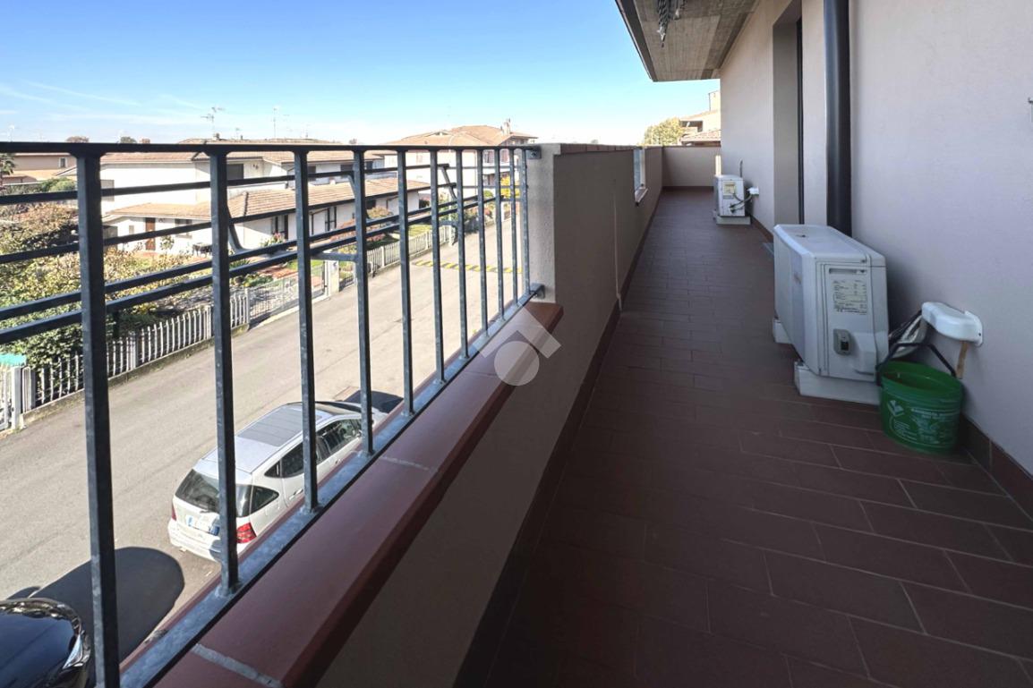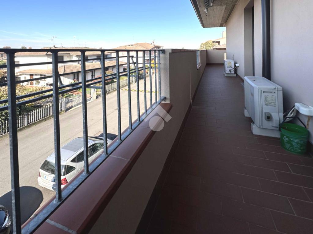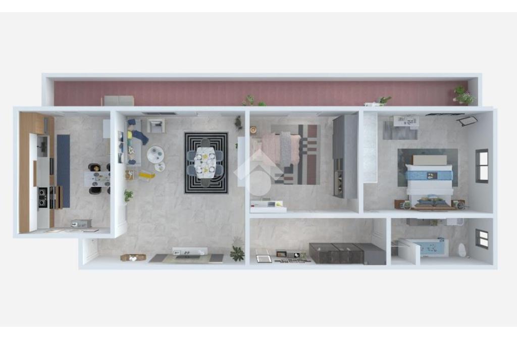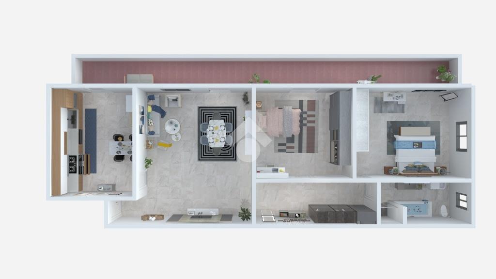 Grande e luminoso appartamento di 95 mq composto da ingresso, soggiorno e cucina separati con accesso diretto al balcone di 20 mq. Disimpegno con spazio per armadio a sei ante. Due camere da letto e bagno con vasca e doccia. Al piano terra troviamo il box di 20 mq e la cantina. L' immobile è completo di zanzariere, aria condizionata e tenda parasole.