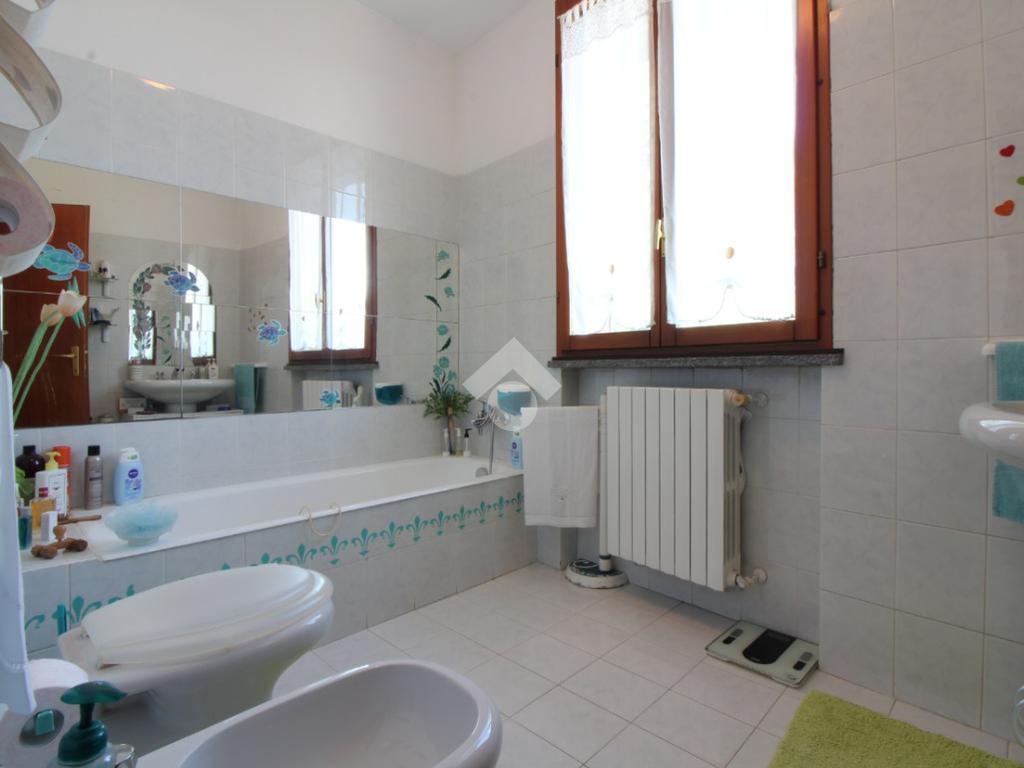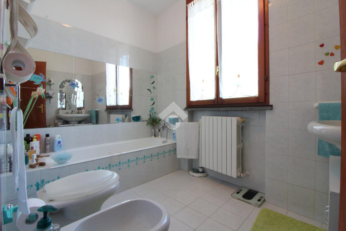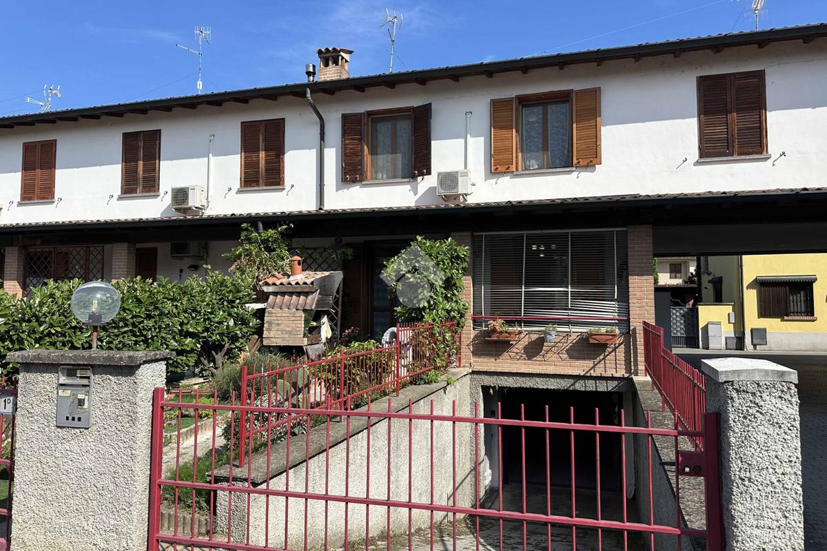 Villa a schiera libera sue tre lati con giardino sul fronte dell'abitazione e portico d'ingresso. L'immobile è composto al piano terra da soggiorno, cucina abitabile e bagno con la doccia. Al primo piano troviamo il bagno padronale con la vasca e le due camere da letto, possibilità di creare la terza camera. Al piano seminterrato il box comodo e la cantina di 33 mq. La soluzione è completa di zanzariere e la predisposizione all'aria condizionata.