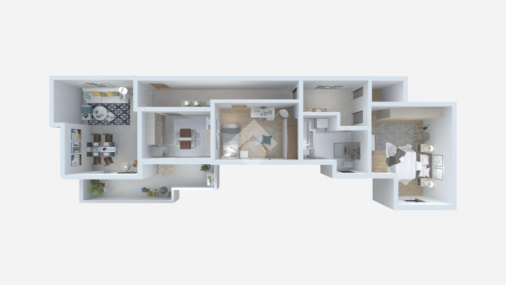 Appartamento di 95 mq con ampi spazi abitativi, composto da ingresso, soggiorno e cucina separati con accesso al balcone. Ampio disimpegno con ripostiglio, due camere da letto rifinite con parquet e bagno con vasca e doccia. Completo di zanzariere e possibilità arredamento. Al piano terra troviamo la cantina ed il box. Libero subito