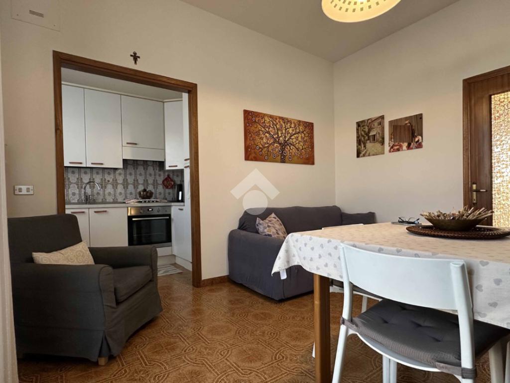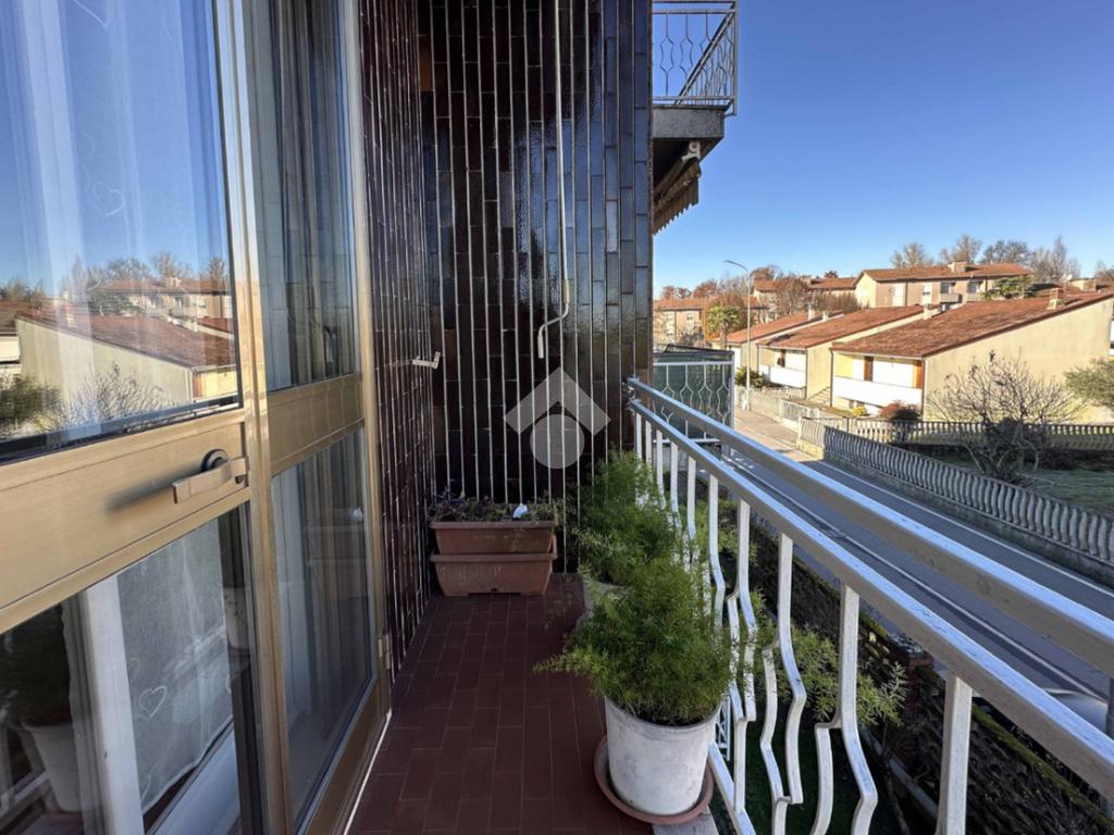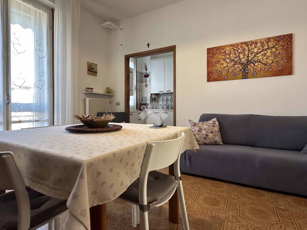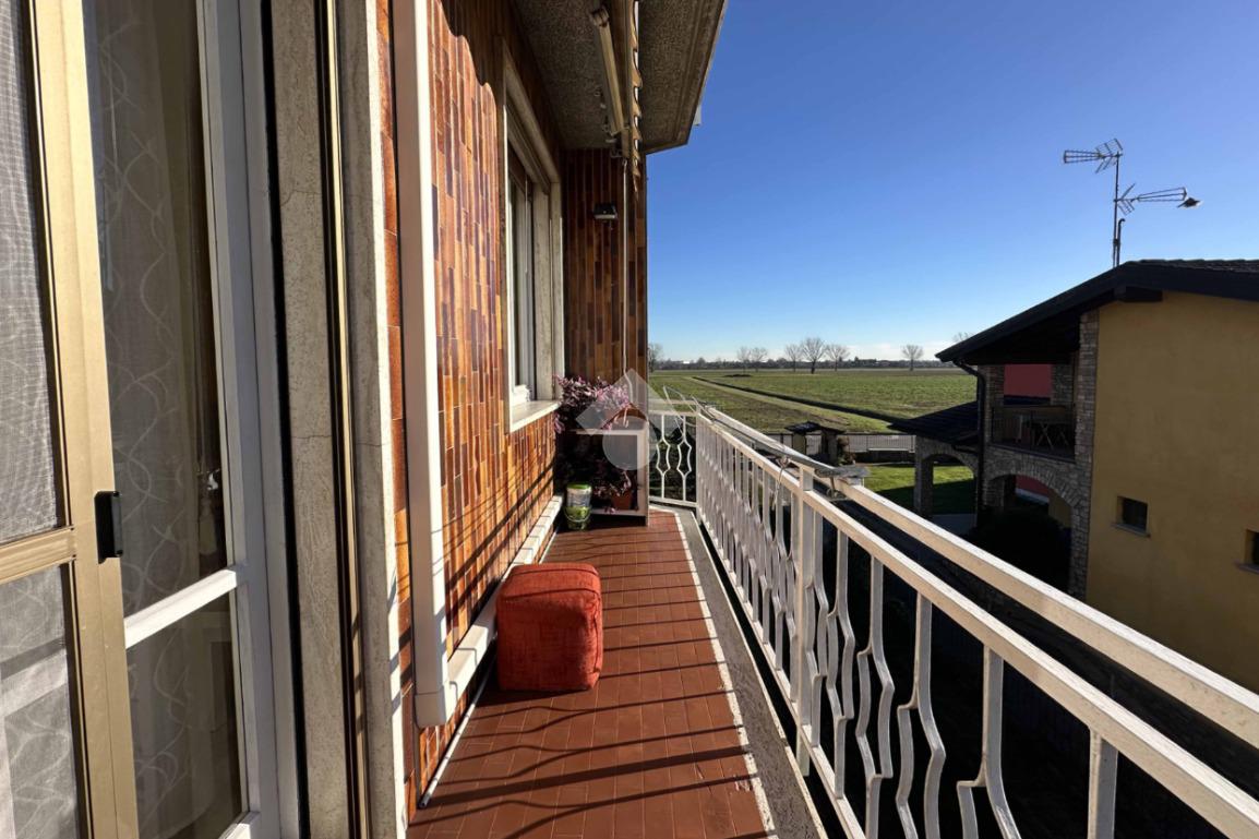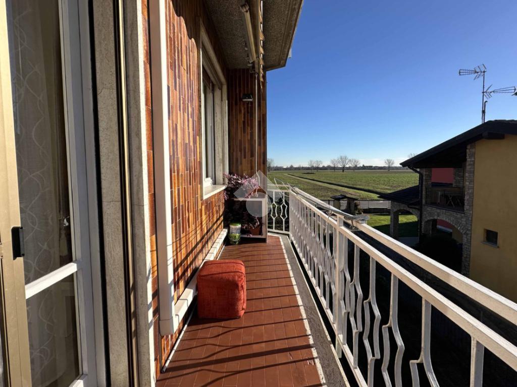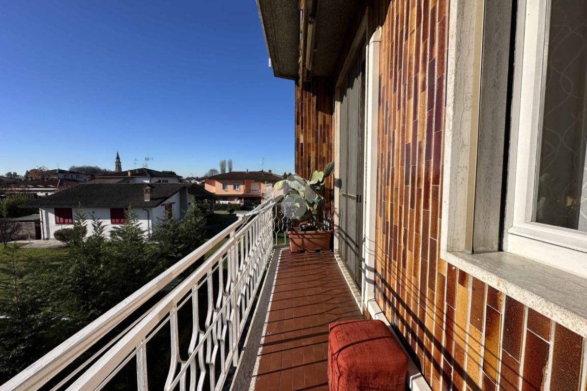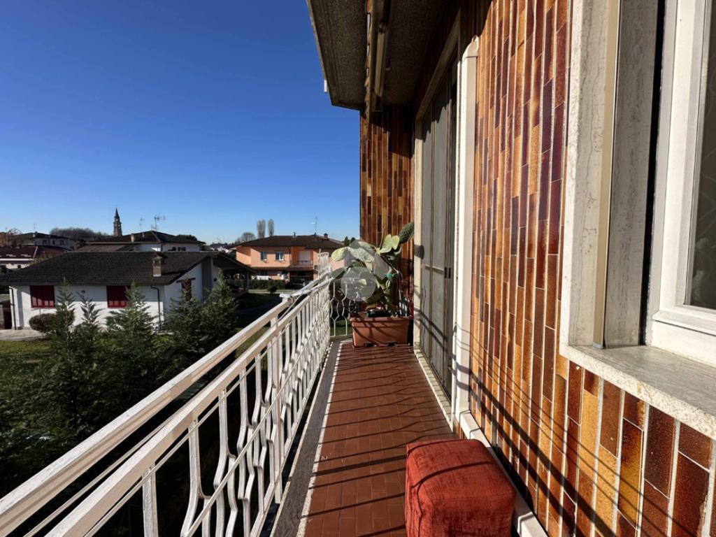 Vaiano Cr. - Appartamento al primo piano di 105 mq. luminoso e con metrature generose. L'immobile è composto da ingresso, sala da pranzo con balcone e cucinotto. Soggiorno con accesso al secondo balcone. Disimpegno con ripostiglio, bagno con doccia e attacchi per la lavatrice. Due camere da letto rifinite con parquet e cappotto interno. Box al piano terra. Completo di zanzariere, tende parasole, predisposizione aria condizionata.