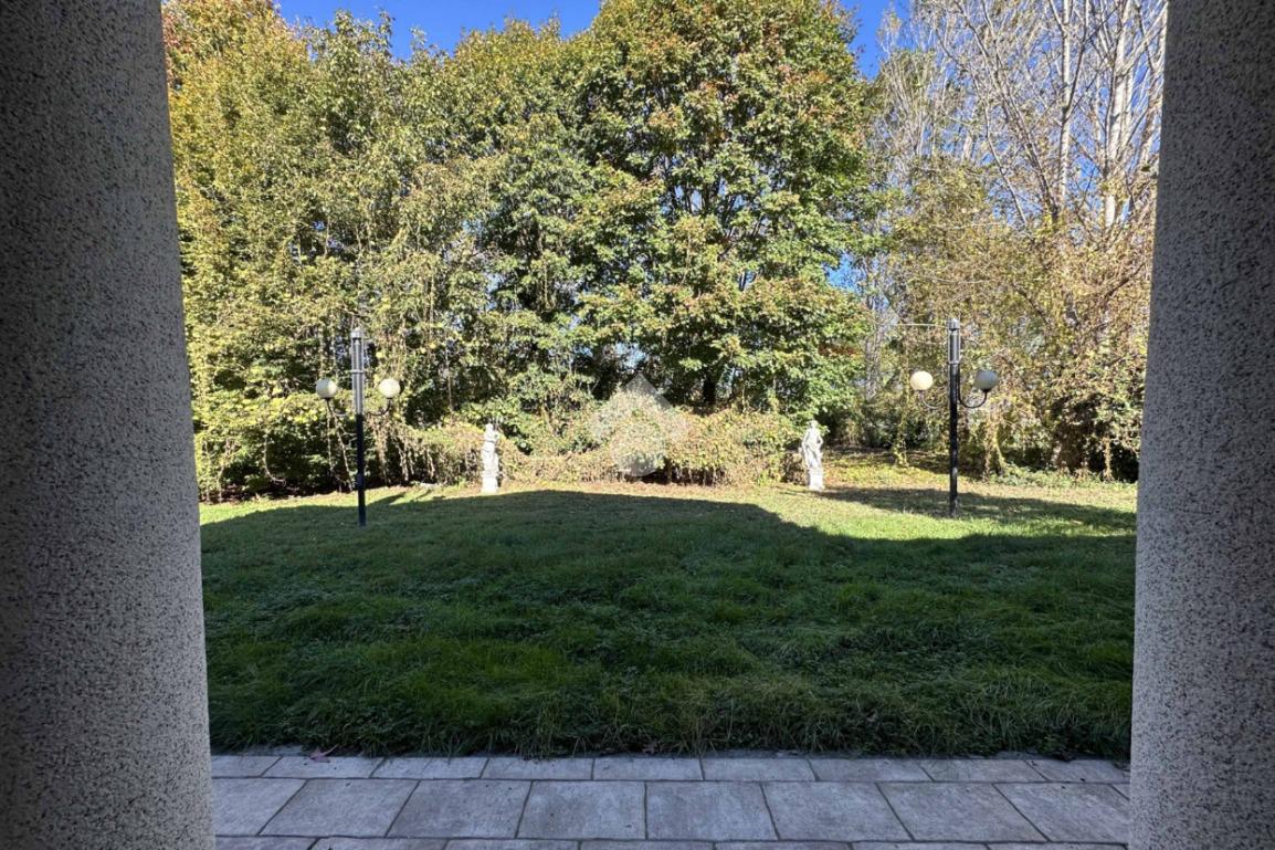 Vaiano Cr. - Prestigiosa villa singola in stile liberty con giardino e parco piantumato di proprietà di 3000 mq. Disposta su unico livello abitativo oltre a piano mansardato con terza camera, bagno e locale hobbies/studio. Terrazzo di 60 mq. Box con tre basculanti sezionali motorizzate. Finiture in marmo e pietra. Zona periferica del paese molto riservata.